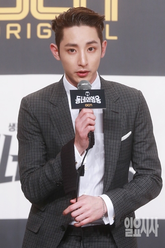 배우 이수혁이 19일 오후 서울 영등포 타임스퀘어 아모리스홀에서 열린 OCN 주말드라마 <동네의 영웅> 제작발표회에서 인사말을 하고 있다.