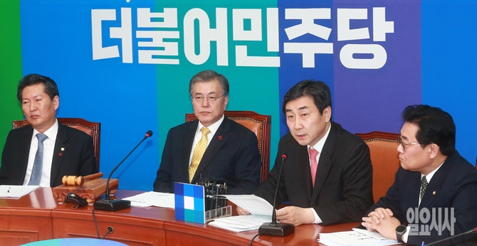 이종걸 더불어민주당 원내대표가 40여일만에 최고위에 복귀한 가운데 20일 오전 서울 여의도 국회에서 열린 더불어민주당 최고위원회의에서 이종걸 더불어민주당 원내대표가 모두발언을 하고 있다.