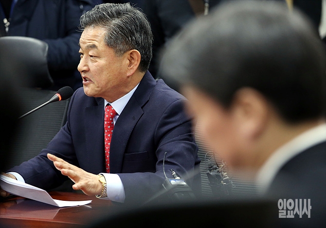 20일, 서울 여의도 국회 의원회관서 열린 국민의당(가칭) 첫 의원단 회의에 참석한 무소속 신학용 의원이 신상발언을 하고 있다. 신 의원은 지난해 서울종합예술실용학교 입법비리 혐의와 관련해 실형을 선고받은 바 있다.