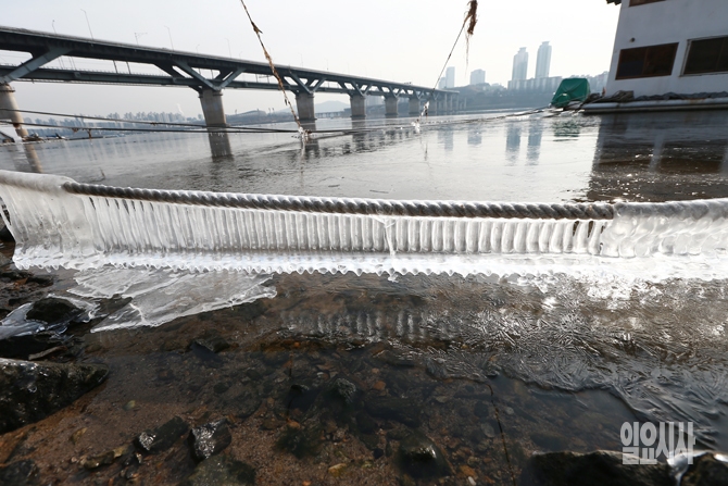 [포토] 한강 주변 밧줄에 달린 고드름