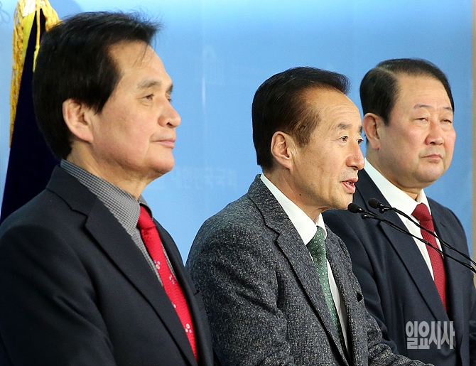 20일, 유선호 전 더불어민주당 의원이 서울 여의도 국회 정론관에서 열린 통합신당 영입 기자회견에서 소회를 밝히고 있다.