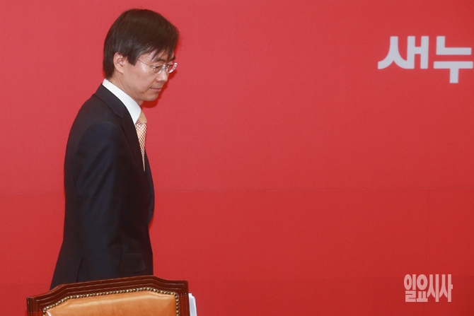 더불어민주당을 탈당하고 새누리당에 입당한 조경태 의원이 21일 오전 서울 여의도 국회에서 열린 새누리당 입당식에 입장하고 있다.