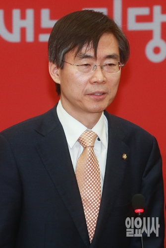 더불어민주당을 탈당하고 새누리당에 입당한 조경태 의원이 21일 오전 서울 여의도 국회에서 열린 새누리당 입당식에서 입당소감을 말하고 있다.