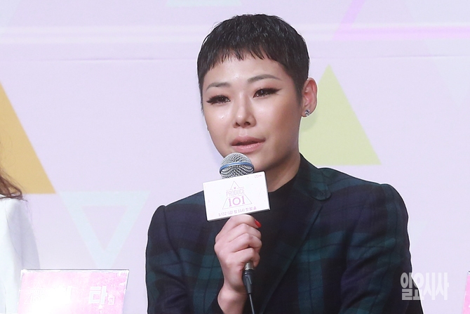 랩퍼 치타가 21일 오후 서울 여의도 63컨벤션에서 열린 Mnet <프로듀스 101> 제작발표회에서 기자들의 질문에 답변하고 있다.