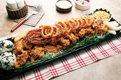 올 하반기 프랜차이즈 창업 핫 트렌드를 꼽으라면 단연 치즈 등갈비. 최근 치즈등갈비전문점에는 젊은이들이 길게 줄을 서서 먹는 모습을 흔히 볼 수 있다. 찜이나 구이로 먹어왔던 등갈비에 매콤한 소스를 입혀 모짜렐라치즈를 돌돌 말아 먹는 퓨전갈비로 재탄생한 것. 갈비 메뉴는 예전부터 있어왔지만 최근에는 서양의 치즈 혹은 해물 등이 접목된 퓨전 메뉴라는 점에서 눈에 띈다. 치즈등갈비의 핵심인 등갈비, 매운맛, 치즈라는 삼박자가 젊은이들의 취향과 딱 맞아떨어진다. 조리가 다 되어 나오기 때문에 먹기가 편하다는 점도 인기요인이다. 한국의 전통 갈비 메뉴에 젊은이들이 열광하는 치즈나 해물을 더해 차별화시킨 것. 서울 관악구 봉천동 서울대입구역 근처에 위치한 ‘등치(매운 등갈비와 치즈)’에는 연일 손님들로 발 디딜 틈이 없다. 치즈등갈비를 먹기 위해서다. 대표메뉴는 ‘매운등갈비치즈’와 ‘바베큐등갈비치즈’ 두 가지다. 매운등갈비치즈를 주문하면 팬에 넉넉하게 살이 붙은 등갈비와 치즈를 담아 나온다. 이 등갈비를 치즈에 찍어 먹거나 돌돌 말아 먹으면 된다. 특제소스를 사용하여 매콤달콤한 등갈비의 맛과 고소한 치즈