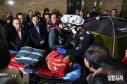 119소방대원들이 21일 서울 여의도 국회 로텐더홀에서 통일교·공천헌금 등 ‘쌍특검’ 수용을 요구하며 단식농성 중인 국민의힘 장동혁 대표를 병원으로 이송하기 위해 현장을 찾았으나 장 대표가 거부해 되돌아가고 있다. 일요시사=천재율 기자(1000jae@ilyosisa.co.kr) <1000jae@ilyosisa.co.kr>
